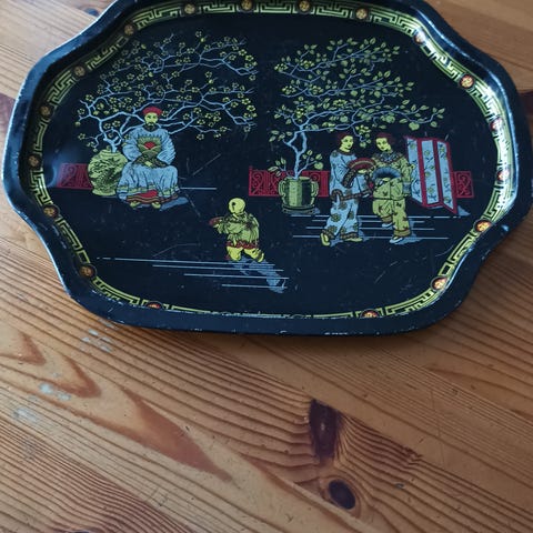 Compagnie de l'Afrique tarjotin ja tarjoilualusta, valmistettu melamiinista. Kuvioitu Afrikka-aiheinen design, jossa norsu ja puu. Tarjottimessa kahvat helpottamaan kantamista. Sopii tarjoiluun ja sisustukseen.Koko setti 14 euroa.