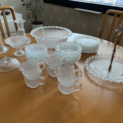 Lasinen ja hyvässä kunnossa oleva tarjoiluun tarkoitettu jalallinen kulho. Nouto tai postitus.