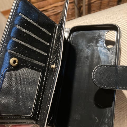 Lompakko , jossa paikat kolikoille , korteille ja puhelimelle