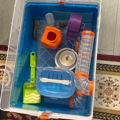 Puinen talo pienille eläimille (82 cm l, 63 cm s, 47 cm k). Hyvässä kunnossa, itse tehty. Katto on avattava.