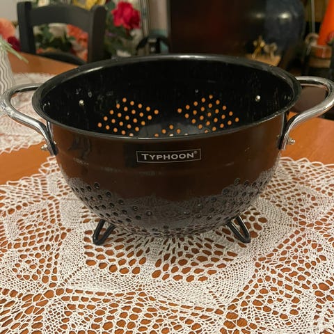 Kaksi mustaa lävikköä. Jotain käytönjälkä löytyy. Käytetty lähinnä kulhona ja tarjoiluastiana. Hinta yhteensä.
