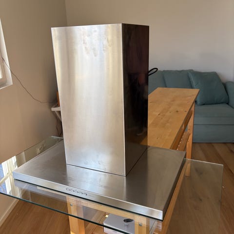 Vähäisellä käytöllä ollut antrasiitin värinen 54cm aktiivihiilisuodattimella varustettu saarekeliesituuletin. Vapaasti sijoitettava, eikä vaadi minkäänlaisia putkituksia.