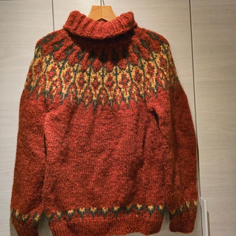 Myydään uusi ja käyttämätön käsin neulottu villapusero.