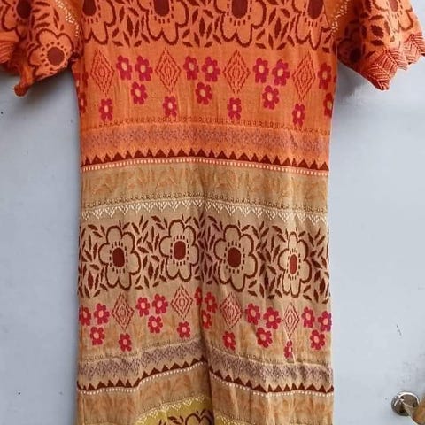 Kaunis trikoomekko puuvillaa, kai-kai 42 cm, olka-helma 110 cm.