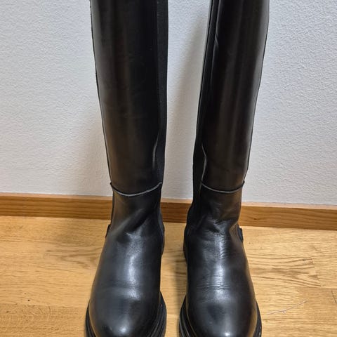 GANT matalavartiset nahkasaappaat mustassa värissä, koko 37. Pitävä ja paksu kumipohja. Sisältä pohja mukavan pehmoinen jalalle. Erittäin kestävän ja laadukkaan oloiset. Ovat olleet jalassa kerran lyhyen reissun ulkona kuivalla syyskelillä ja todettu liian isoiksi omaan käyttöön (palautusaika ehti mennä umpeen).