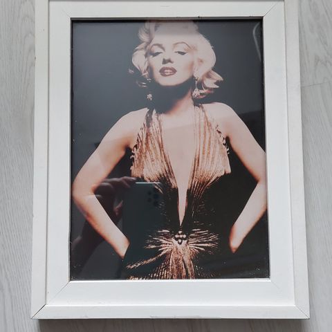 Marilyn Monroe seinäkoriste. Vähän kellerystä, joka näkyy nurjalla enemmän. Pituus ~79cm, leveys ~32cm.