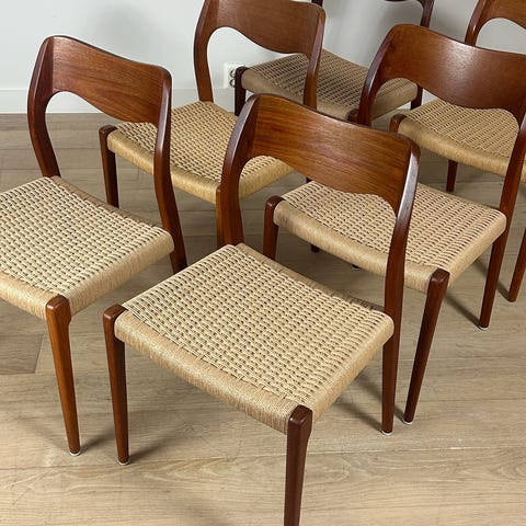Myydään upea setti alkuperäisiä Niels Otto Møller Model 71 -tuoleja, valmistettu harvinaisesta palisanterista (rosewood).