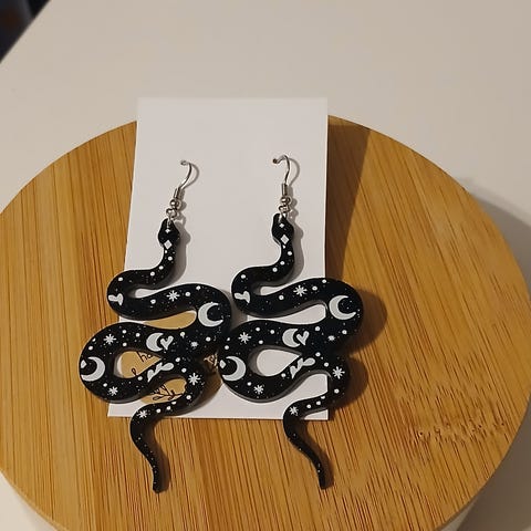 Myydään hyväkuntoisia, isompia käärme korviksia. Koukut ei sisällä nikkeliä.