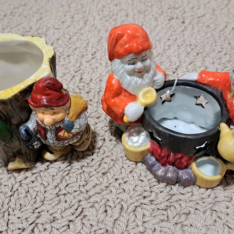 Posliiniset vintage tonttu kynttilänjalat 40-50 luvulta.