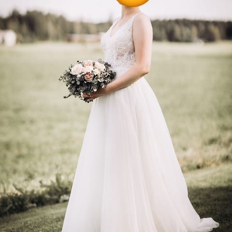 Myyn viime Kesän Angela Bianca hääpukuni. Pukua on pidetty sen yhden kerran rauhallisissa kotihäissä vain muutaman tunnin.