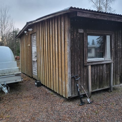 Peltiverhoiltu parakkirakennus, jossa keltainen ulkoverhous ja punainen katto. Vaihtolavakiskoilla. Pituus 6,2 m, leveys 2,55 ja korkeus Sähköt, lämpöeristetty. Ollut kahvitupana ja varastona.