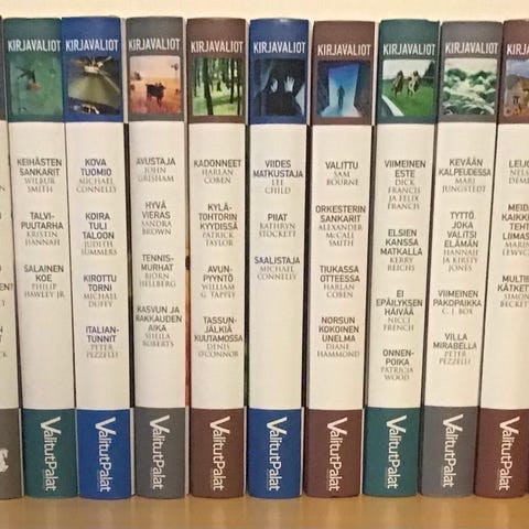 Valitutpalat kirjat en ole laskenut mutta on niitä sen verran paljon ettei niitä yhdessä illassa Lue 1e kpl taikka ehdotuksia koko paketista