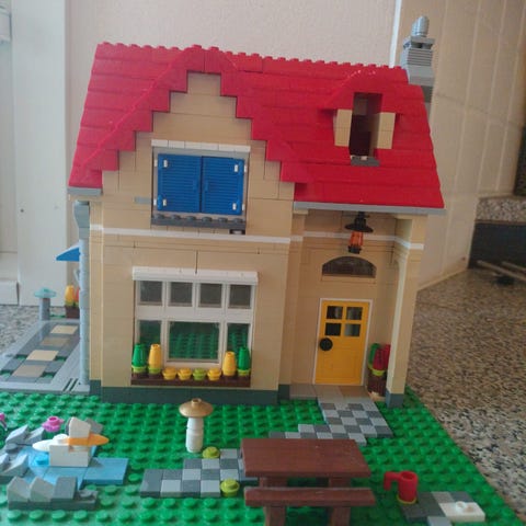 LEGO Creator talonrakennussarja (5771), jonka avulla on mahdollista rakentaa kolme erilaista taloa: quick, experienced ja advanced build. Kuvassa eilen koottuna advanced build-versio. Alkuperäislaatikko ja ohjekirjaset. Suositusikä 8-12 vuotta. Nouto Katajanokalta tai Tori Diilinä.