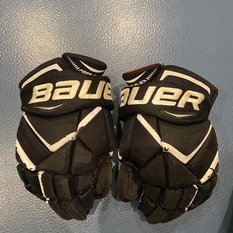 Easton Jääkiekko hanskat, koko 12" (30 cm), musta väri. Hanskoissa vasemmassa kädessä kämmenalueella peukalon kohdalla selvää kulumaa ja reikiä. Oikeassa kädessä pieni reikä peukalossa ja kämmenen kohdalla. Vielä käyttökelpoisessa kunnossa kuitenkin.
