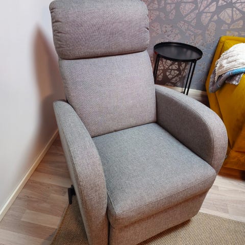 Siistikuntoinen teddykarvatuoli, jossa mukava istua. Ostettu aikoinaan Homeroomista.