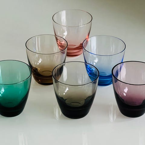 HINTAA TIPUTETTU ! Käsin puhalletut snapsilasit 6 kpl. Uniikit ja yksilölliset. Kuin Auroorat, mutta spesiallimmat. Kevyet. Kork18 cm, sis 3 cl. Ei käytetty☺️