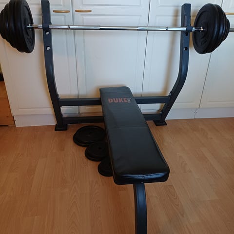 Kulmatanko, lukot ja Weider rautapainoja yht. 17,5 kg
