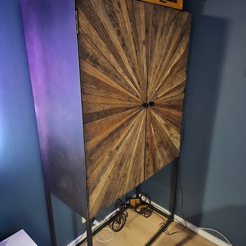 Myydään paikallisen kalusteyrityksen vuonna 2022 tekemä kalustetorni. Kalusteessa nosto-ovellinen yläkaappi ja reilun kokoinen alalaatikko. Tornissa on ollut kaksi tavallista erillisuunia mutta soveltuu hyvin muuhunkin käyttöön.