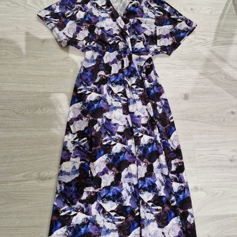 Hyväkuntoinen ja vähän käytetty musta mekko. Mekko on kauniisti laskeutuvaa materiaalia, eikä rypisty kovin helposti. Helman frillaosan leikkaus kaartaa takaa hieman alemmas.