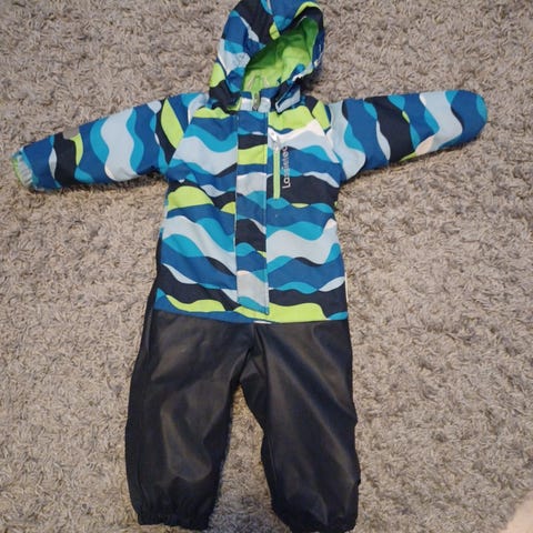 Paljon pidetty ja kurakankaassa jonkin verran ”viilto” jälkiä ja taskun reunaa korjattu. Vaaleanpunaisessa osassa tummentumaa. En enää kuralätäkkö leikkeihin laittaisi, mutta kuivempiin hommiin vielä ihan hyvä haalari.