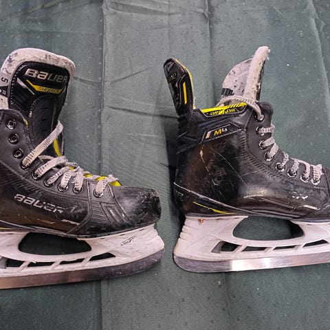 Siitä seuraavalle bauer M4 luistimet TUPLATERILLÄ. Koko 4 fit 1 about eur 36. Luistimet olleet vajaa 2 kautta käytössä ja ihan hyvässä kunnossa. Käytön jälkiä löytyy mutta ei mitään mikä pelaamista haittaisi. Alkuperäisiä pohjallisia ei ole mutta halutessaan mukaan saa sopivat quickfit pohjalliset. Myös teräsuojat on mahdollista saada mukaan.