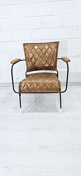 Uusi, aitoa nahkaa oleva moderni, ruskea tuoli. Siron rakenteen vuoksi sopii tilaan kuin tilaan, aina keittiöstä olohuoneeseen. Sirosta ulkonäöstä huolimatta tuoli on tukeva ja hyvä istua. Kuvassa mallikappale. Tuoleja löytyy useita myyntipakkauksissa.
