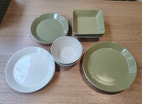 4kpl tarjoiluvadit 16x16cm, 3 oliivia ja 1 valkoinen