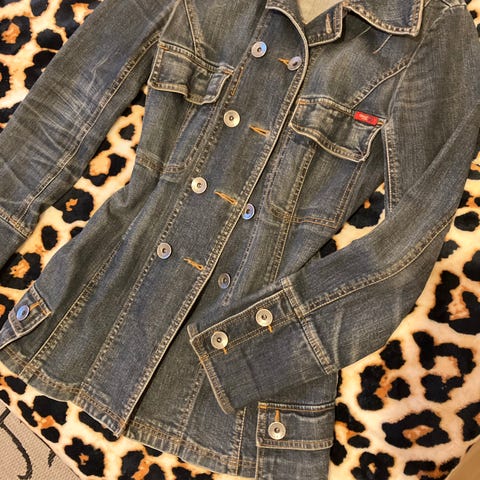 y2k takki, naisten koko S, mutta mielestäni se on huomattavasti pienempi (xs tai xxs) sininen väri. Takissa on vyö ja napit hihansuissa sekä edessä, korkea kaulus ja vetoketjutaskut. Materiaalion farkkumainen