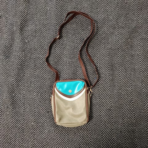 Kuvan mukainen beige köytetty olkalaukku. Hihna on rikki, mutta saa varmaan fiksattua. Laukussa jonkin verran kulumaa.