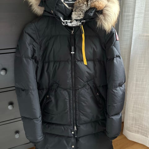 Myydään vähän pidetty Parajumpers-talvitakki. Pieni (1 x 2 cm) reikä oli päällikankankaassa taskun kohdalla edessä, se paikattu nyt mustalla vaatelaastarilla ja on täten hyvin huomaamaton. Huomioitu hinnassa.