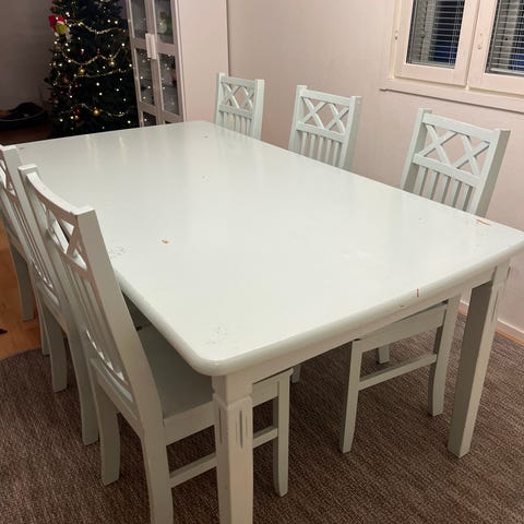 IKEA:n 4 hengen ruokailuryhmä. Neljäs tuoli on häkkivarastossa. Nouto Oulusta.