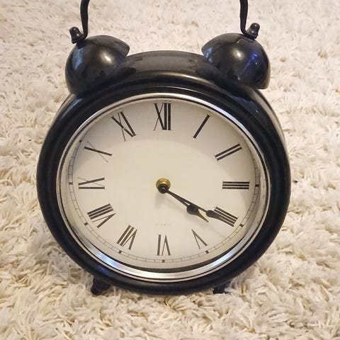 Harmaa seinäkello, alareunassa osuma.