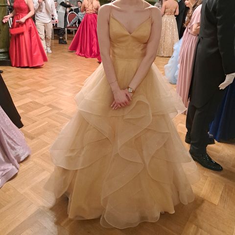 Vanhojentanssi mekko/Juhlamekko, shampanja, Koko 36