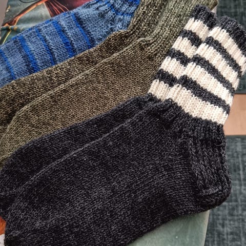 Aivan ihania villasukkia SukkaRaijan sukkapöydältä. 75- ja 80- prosenttisesta villalangasta huolella neulotut. Kokoja 39-48. Hinta pienimmät 25 e., isommat 25-32 e. Hinta sovittavissa, varsinkin jos useammat ostaa. Tervetuloa vaikka paikan päälle katsomaan, voin lähettää myös postitse.