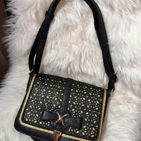 Käytetty, mutta ehkä ja siisti Sugar skull -olkalaukku. Olkahihna säädettävä. Mitat (noin) korkeus 25cm, leveys 20cm, pohjan leveys 5cm.