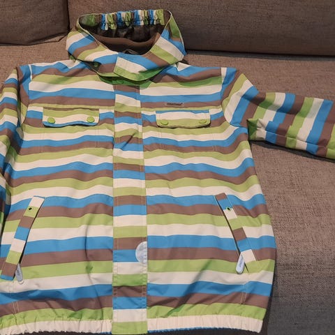 Harmaan kokomerkintä 146, mutta reilua mitoitusta. Kuviollinen 152. Harmaassa sisällä irrotettava vihreä fleecetakki. Jotain käytön jälkeä ja nimikointeja voi löytyä, mutta ihan perussiistissä kunnossa ovat. En ole testannut vedenpitävyyttä.