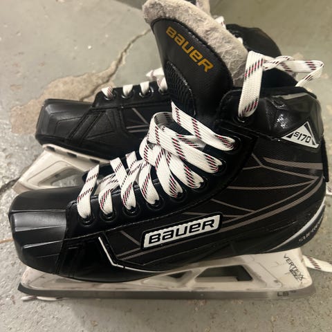 Hyvä kuntoiset Bauer 3s jääkiekkomaalivahdin luistimet. Koko (1) 33,5. Terät pikakiinnityksellä.