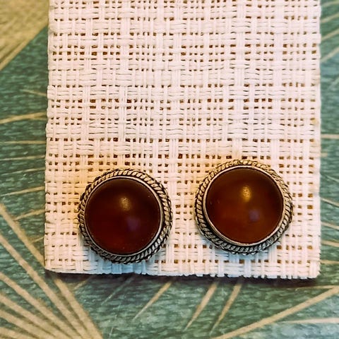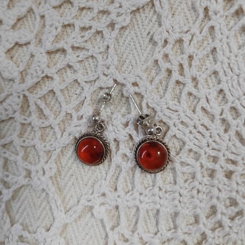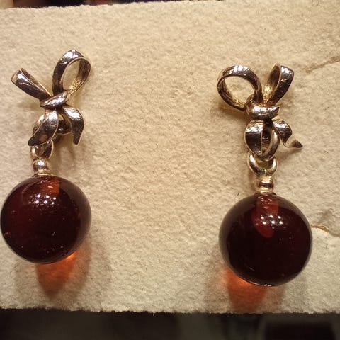 Hopeiset vintage meripihkakorvakorut