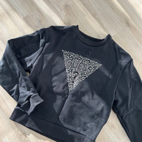 Myynnissä tyylikäs valkoinen Guess-merkkinen crop-top t-paita.