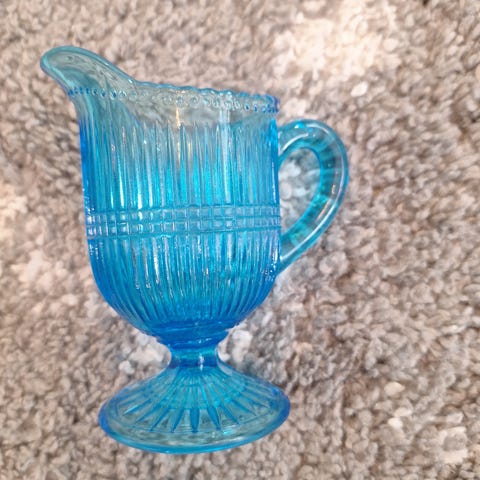 Nuutajärven lasin turkoosi kermakko. Kunnossa ei mitään moitteita.