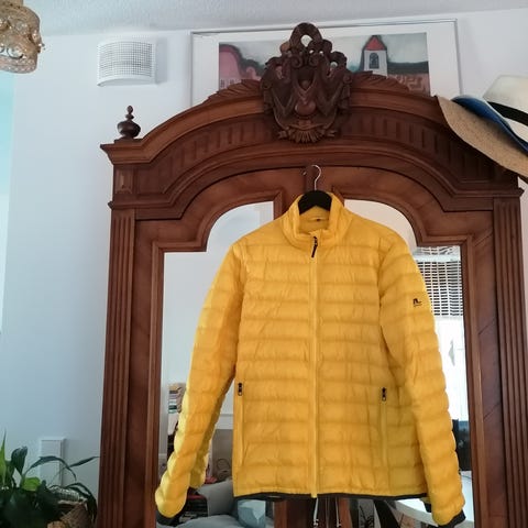 Avainsanat: kevytvuoritakki tuulitakki IStay keltainen välikausitakki naisten kevättakki siisti M hupullinen