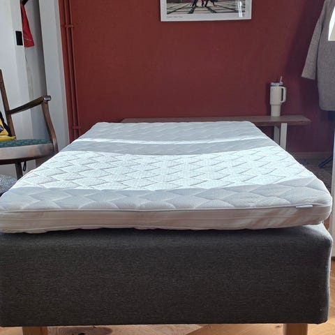 Sijauspatjojen päällä käytetty aina patjansuojusta. Patjojen kankaaseen on tullut vähän lenkkejä muuton yhteydessä. Patjat ostettu vuonna 2021. Myydään pienempään sänkyyn siirtymisen takia.