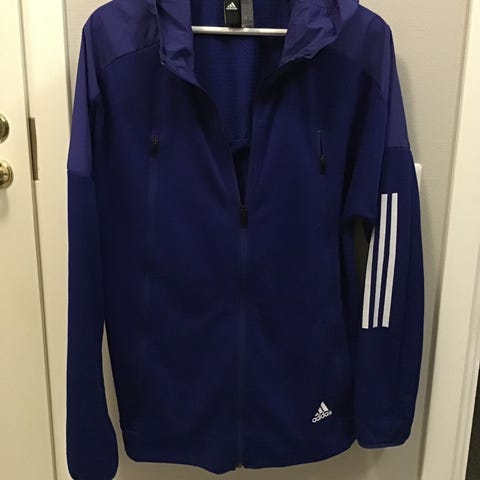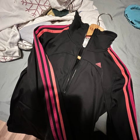 Adidas Originals unisex urheilutakki, koko L. Takissa on musta tumman sininen ja punaiset raidat hihoissa sekä rintataskun ympärillä. Vetoketjullinen malli, sopii monenlaiseen urheilukäyttöön tai vapaa-aikaan.