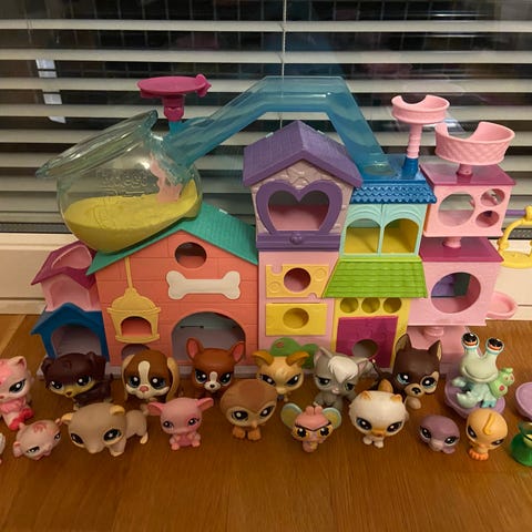 Littlest Pet Shop lastenlelut ja leikkisetit, sisältäen useita pieniä hahmoja, taloja ja leikkipaikkoja erilaisilla väreillä ja muodoilla. Materiaali muovia, sopii lasten leikkeihin.