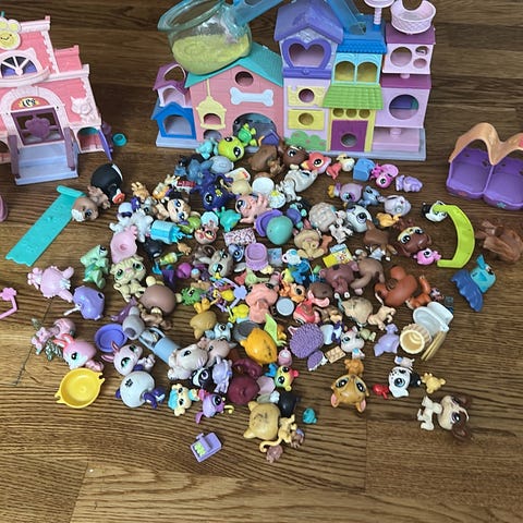 Parikymmentä hahmoa ja kasa lisätarvikkeita leikkeihin. Leikittyjä mutta hyväkuntoisia.
