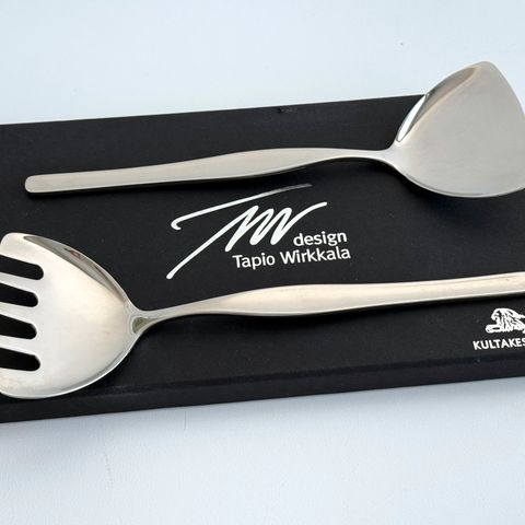 Myydään Tapio Wirkkalan suunnittelemat mustat salaattiottimet. Materiaali polyamidia (nylon). Suunniteltu vuonna 1961, valmistaja Strömfors.