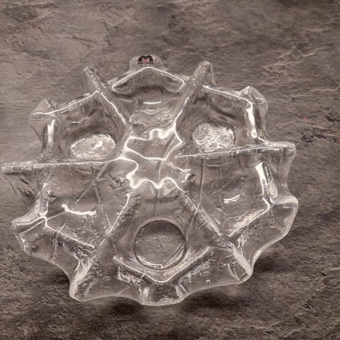 Siistikuntoinen Muurlan tuikkuastia viidelle kynttilälle. Korkeus noin 3cm ja halkaisija 25cm. Sijainti Pataluodossa Rantakylässä.