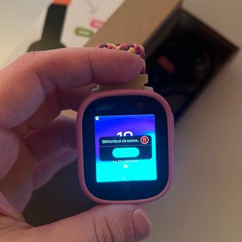 Yhdellä lapsella käytössä ollut Xploran kellopuhelin. Väri pinkki.