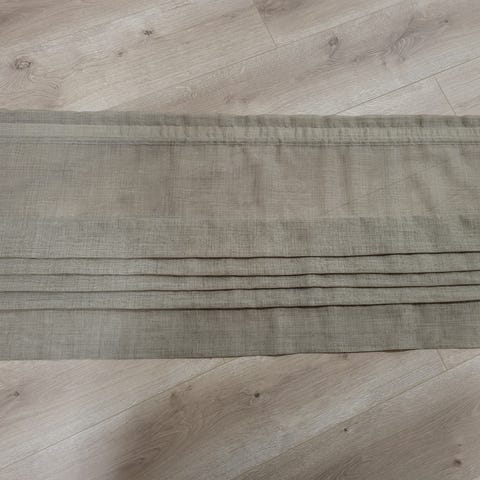 Siistit pellavaverhot ja kiinnitystanko, tulee tarranauhalla kiinni. Leveys 160cm. Valkoinen ja harmaanruskea tehoste osio