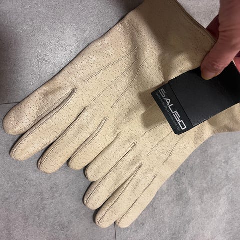 Lähes käyttämättömät nahkahanskat / sormikkaat minkki koristeet , vuori cashmere lined, koko 6,5. Postitus tai ToriDilli.